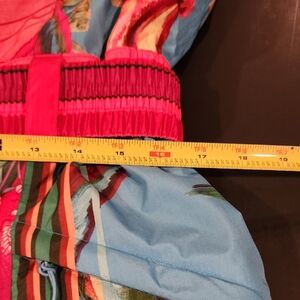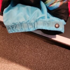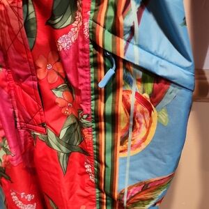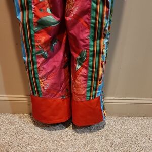Bright and artistic design. Features a mix of floral, fruit and geometric patterns. Worn 2x, tons of compliments! Standout on the ski slope! one piece ski suit.