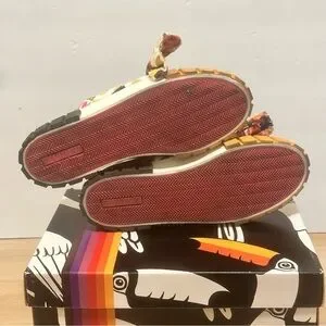 Vibrant mules with a playful pattern. Features a mix of colors and bold design. Comfortable and stylish.