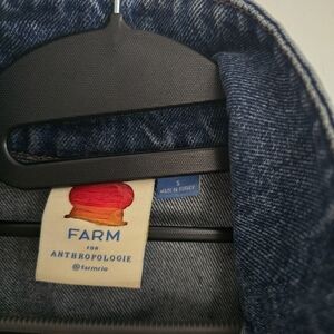 Farm Rio for Anthropologie denim crochet jacket in a size small. In perfect condition and only worn a handful of times. Bright crochet on the back overlay on the denim.