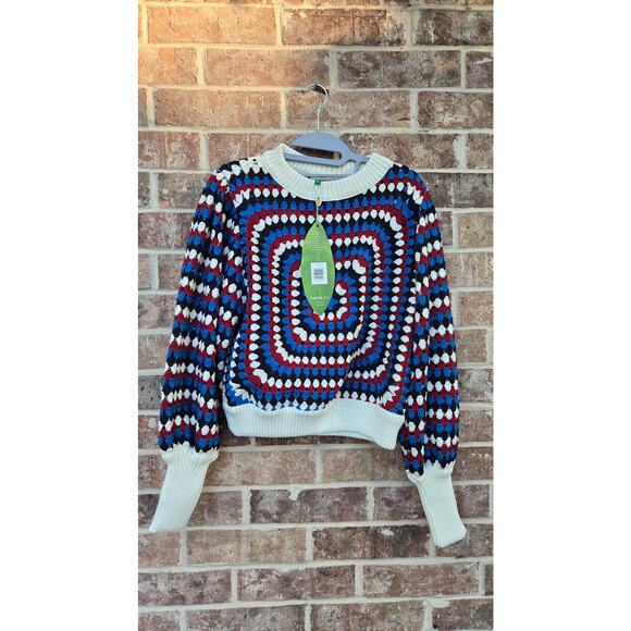 FARM Rio Crocheted Balloon Sleeve Sweater NWT Size M