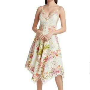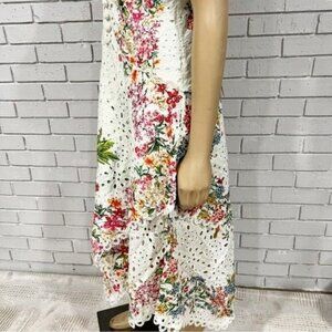 FARM Rio “Delicate Forest Scarves” Eyelet Midi Dress • Rare Print • Size M
