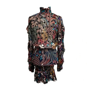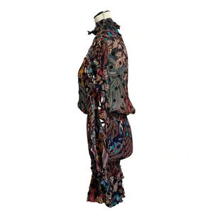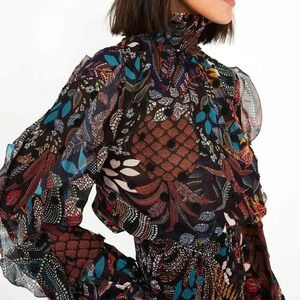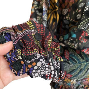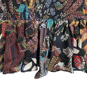 FARM Rio mini dress, embroidered smocked dress, boho chic floral dress, whimsical ruffle dress, fall festival dress, women’s size small FARM Rio, Delicate Forest dress, romantic cottagecore dress, embroidered festival outfit, feminine embroidered mini dress, colorful bohemian chic style, smocked waist festival dress, resale $220 retail designer dress