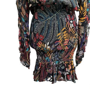 FARM Rio Delicate Forest Smocked Mini Dress Small Floral Embroidered Boho Chic