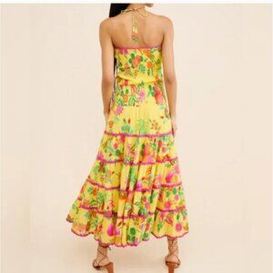 FARM Rio Delicate Fruit Garden Halter Maxi Dress size S