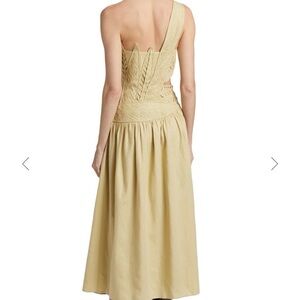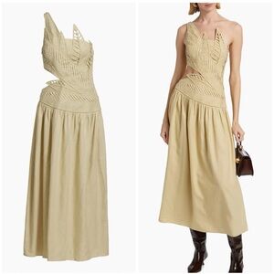 NWT Farm Rio cut-out-midi-dress in color Sand. Chic one shoulder design. Intricate cutout bodice detailing. Concealed side zipper. Perfect for stylish outings! I wish this beauty fit me but sadly, I need a different size. My loss, your gain!