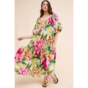 FARM Rio Dress Womens Small Floral Print Painted Flowers Off The Shoulder Maxi