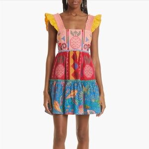 FARM Rio Embroidered Colorblock Flutter Sleeve Mini Dress