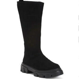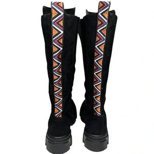FARM Rio Embroidered Tall Faux Suede Lug Boot in Black Sz: 10