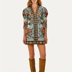 Vibrant floral mini dress by FARM Rio. Features a mix of colors with intricate patterns. Perfect for a bold, stylish look.