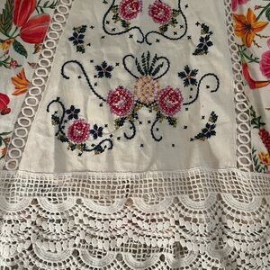• Intricate embroidered center panel
