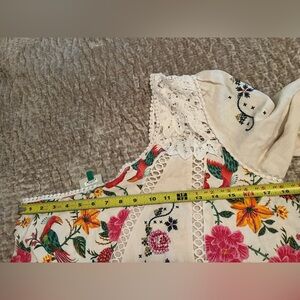 Stunning FARM Rio one-shoulder embroidered mini dress featuring vibrant tropical bird & floral print with artisan embroidery panel detailing.