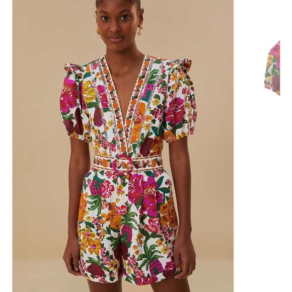 FARM Rio Floral Romper with Ruffle Sleeves