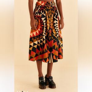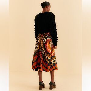 FARM Rio Geometric Skirt in Black, Red, and Orange