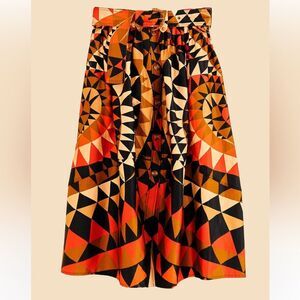 Bold geometric print skirt. Features vibrant colors and unique design. Perfect for a statement look.