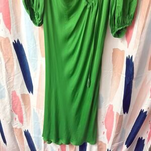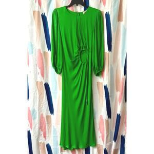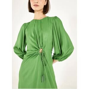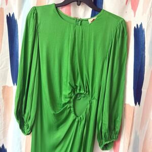 FARM Rio Green Solid Blouson Sleeve Cutout Midi Dress Size Medium