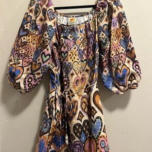 So cute! Linen dress. Beaded tassles. A fun addition to a wardrobe and perfect for valentines or just plain everyday. Worn once for an hour, a bit too big for me.