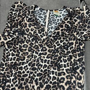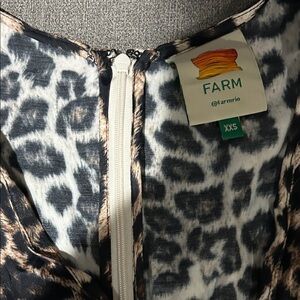 Stylish leopard print dress by FARM Rio. Features long sleeves and a deep V-neck. Perfect for a bold look. Brand new with no paper tag just plastic as shown in photo.