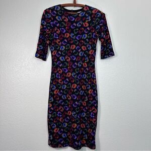 FARM Rio Leopard Print Jersey Sheath Dress in Black Ikat-Dyed Size S