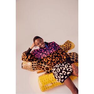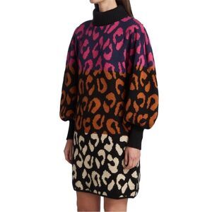 FARM Rio Leopard Pattern Sweater Dress High Neck Multicolored Sz L NWT