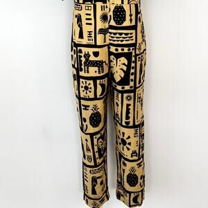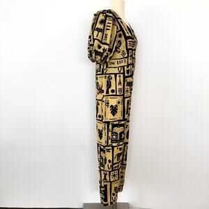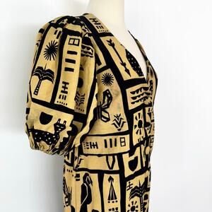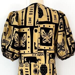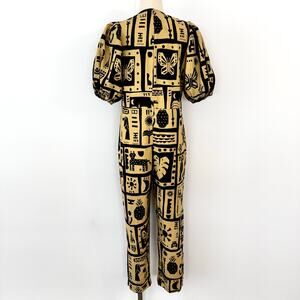 FARM Rio Linen Button-Down Jumpsuit Short Balloon Sleeve Beige/Black S