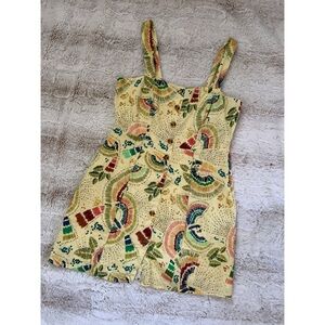 Vibrant mini dress with a playful pattern. Features button detail, side zip, and is fully lined. Runs small, no stretch.