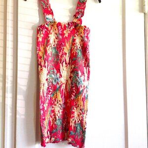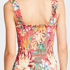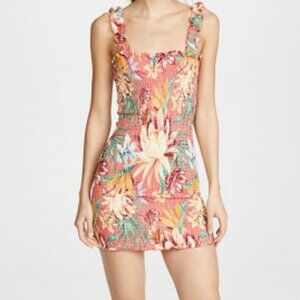 FARM Rio Lotus Floral Shirred Mini Dress Boho Dopamine Tropical Feminine