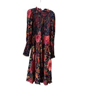 FARM Rio Macaw Bloom Floral Smocked Mock Neck Juliet Sleeve Dress