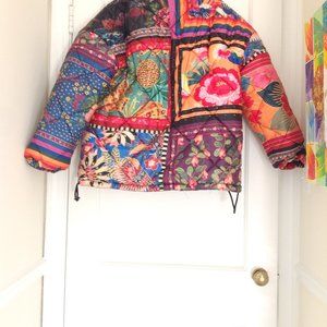 FARM Rio Mixed Scarves Reversible Puffer Jacket Patchwork Dopamine