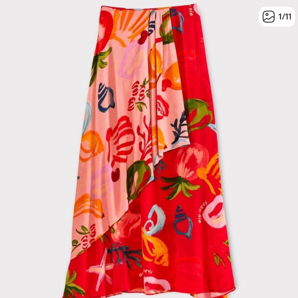 Bold abstract design by FARM Rio. Features a blend of pink, red, green, and blue hues.