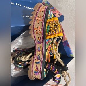 Vibrant beaded design. Bold platform style. Perfect for a statement look.