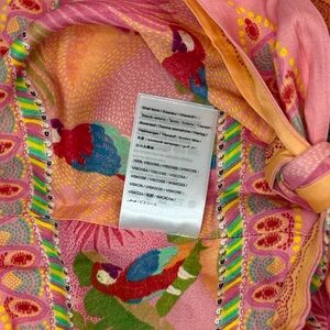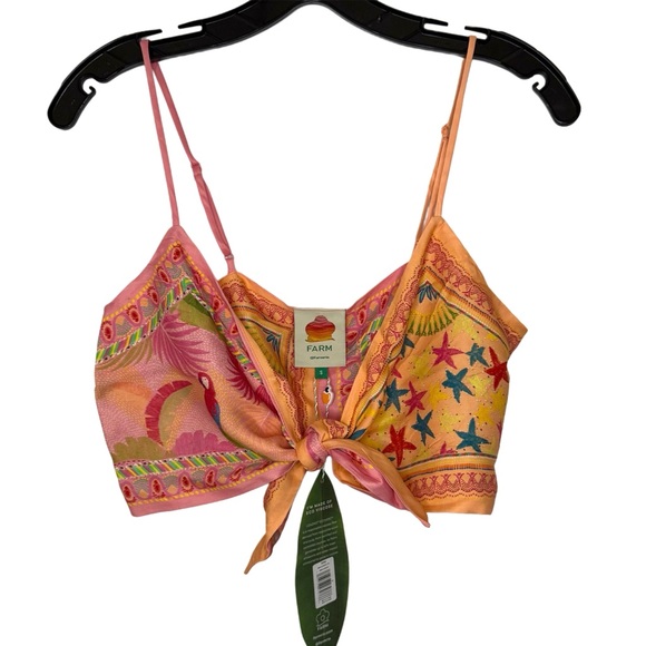 Vibrant crop top with a tie front. Features colorful patterns and thin straps. Perfect for a bold look. NWOT. Never worn. Super cute. Farm Rio, size medium.