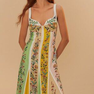 FARM Rio Multicolor Delicate Floral Stripes Lenzing Ecovero Euroflax Maxi Dress