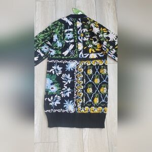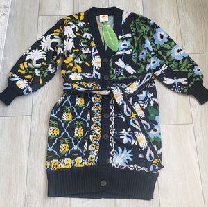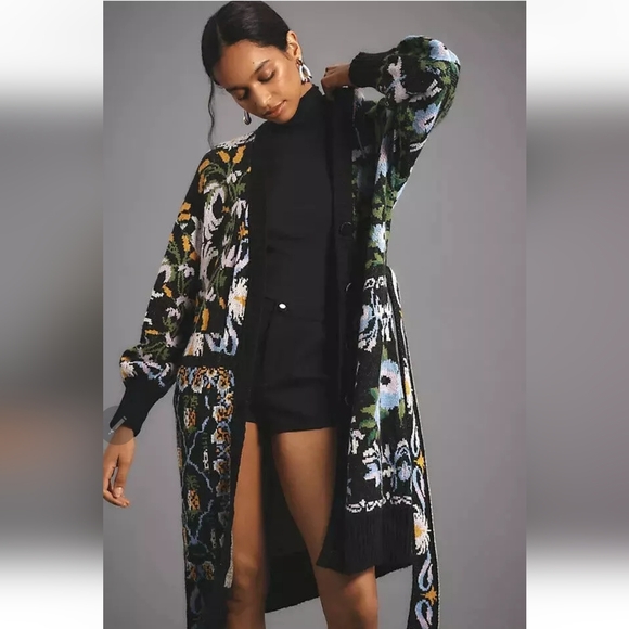 Vibrant floral design. Long sleeves. Open front style. Perfect for layering.