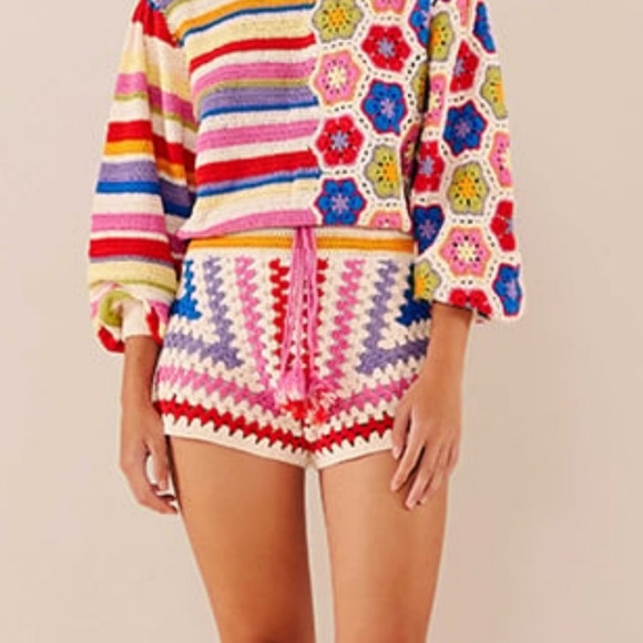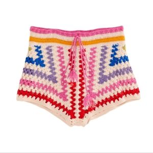 Vibrant knit shorts with a playful pattern. Features a mix of colors for a bold look. Comfortable and stylish.