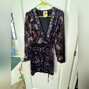 Black Arabesque Mix Scarves Wrap Mini Dress.