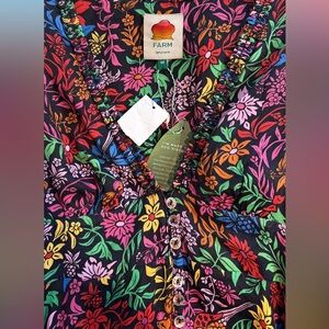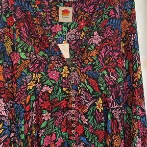 Vibrant long sleeve dress by FARM Rio. Features a colorful floral pattern. Perfect for any occasion.