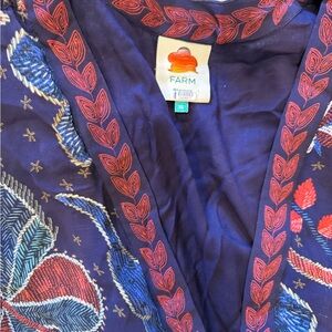 Vibrant maxi dress by FARM Rio. Features a deep V-neck and long sleeves. Eye-catching floral and geometric patterns.