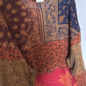 Vibrant patchwork design. Features paisley and leopard patterns. Comfortable and stylish.
