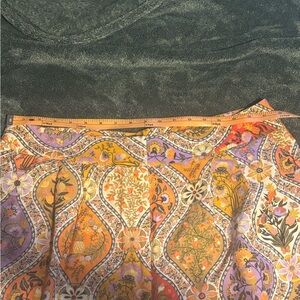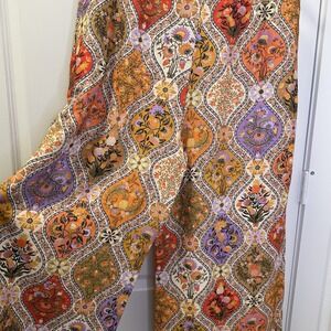 Vibrant cropped pants with intricate patterns. Features a mix of colors for a bold look. Perfect for casual outings.