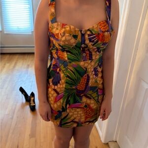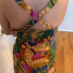Bright and lively fabric by FARM Rio. Features a mix of green, blue, red, and yellow patterns. Linen . New with tags . Cute for vacation, lunch at beach