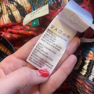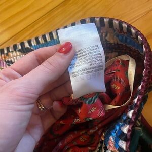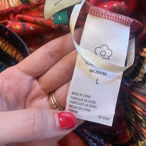Vibrant multicolor pants with floral and animal patterns. Elastic waistband for comfort. Unique and bold design.