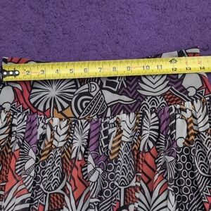 Vibrant skirt with intricate patterns. Features shades of pink, orange, and brown. Perfect for a bold look. 14 in he's across waist. It is missing the small hook on the closure but zipper works fine and stays zipped. Pet friendly and smoke free home☺️