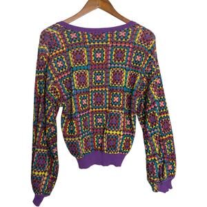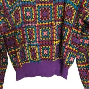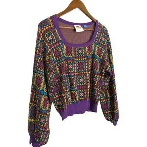 Vibrant geometric design. Long sleeves. Ribbed cuffs and hem.