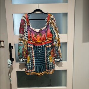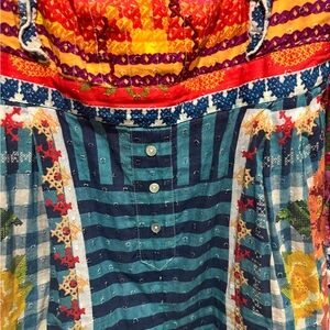 Bright and bold design with geometric patterns. Features pink, purple, and green tones.XL missing the belt