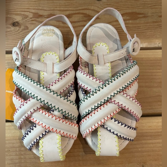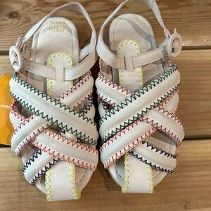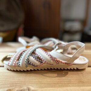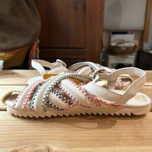 Stylish sandals with multicolor stitching. Comfortable and chic design. Perfect for casual wear.