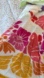 Vibrant mini dress with tropical leaf print. Features a mix of green, blue, purple, pink, orange, and yellow hues. Perfect for a lively look.