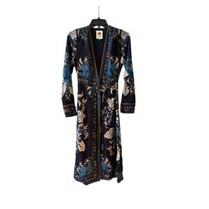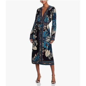FARM Rio New Women's Blossom Tapestry Long Sleeve Wrap Midi Dress XXS