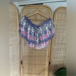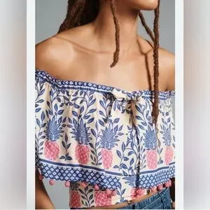 FARM Rio Off The Shoulder Crop Ruffle Blouse