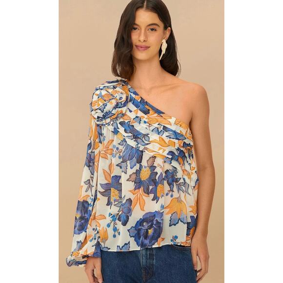 FARM Rio Off-White 3D Rose One-Shoulder Floral Blouse NWT Summer/Resort Top