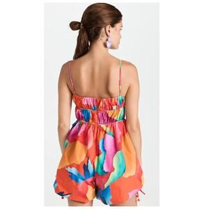 When Summer calls for tropical, breezy faves, you can answer in the Red Ombre Chita Organic Cotton Romper. It features a contemporary twist on a classic silhouette with ruched detailing, beaded tassels, and a mini length that goes with your solar flow.